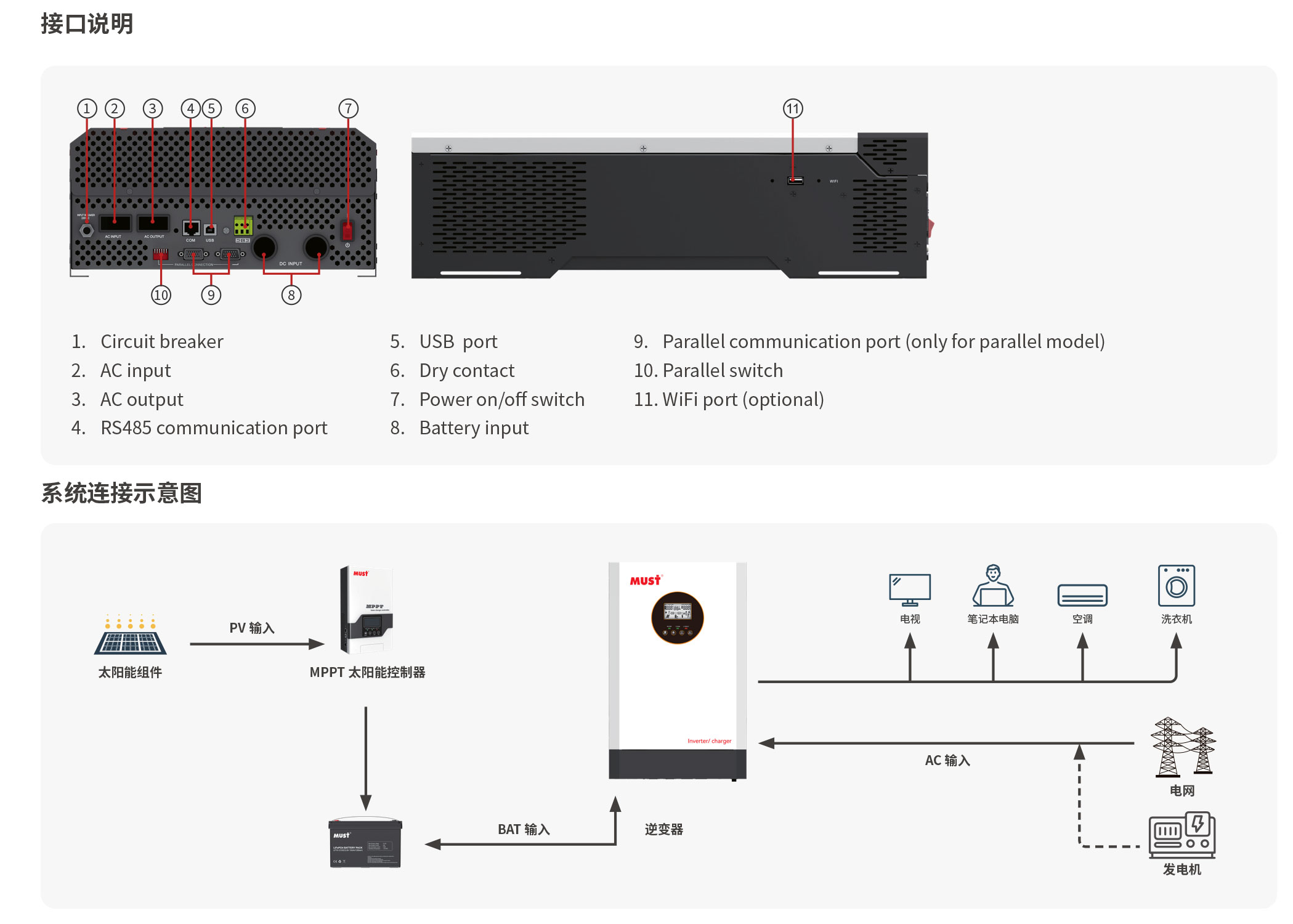 應用領域: 廣泛應用于家庭、通訊基站、監控系統、牧區等戶用型發電系統及 DC-AC 的供電系統。
