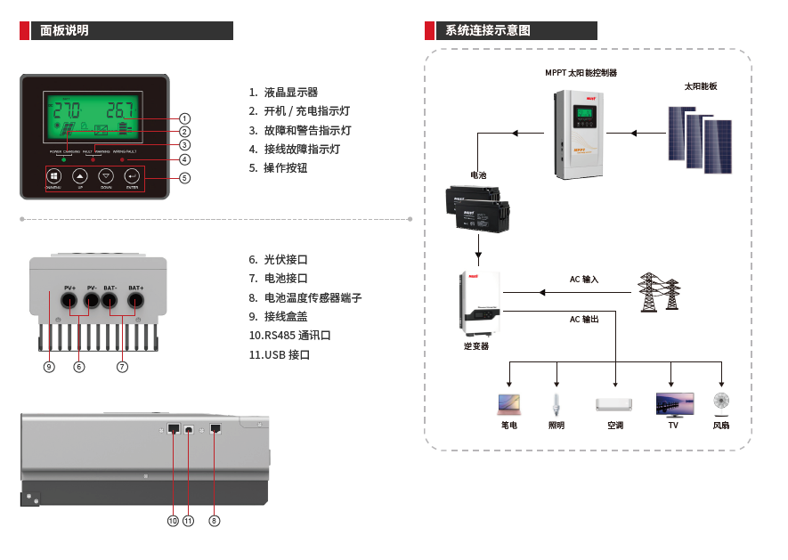 應用領域: 應用于太陽能系統、監控系統、中小型通訊基站供電系統、太陽能直流供電系統。