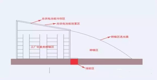 多功能棚屬于智能光伏農(nóng)業(yè)。棚前做冬暖大棚種植植物,棚后做工廠化食用菌養(yǎng)殖,棚頂發(fā)電。一棚三用,能量循環(huán)、節(jié)水、節(jié)地、節(jié)能。