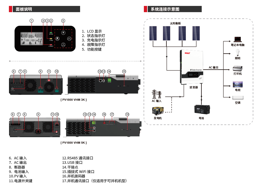 • 具有多模式設置功能,可通過LCD 屏選擇設置光伏、市電、電池的優先等級