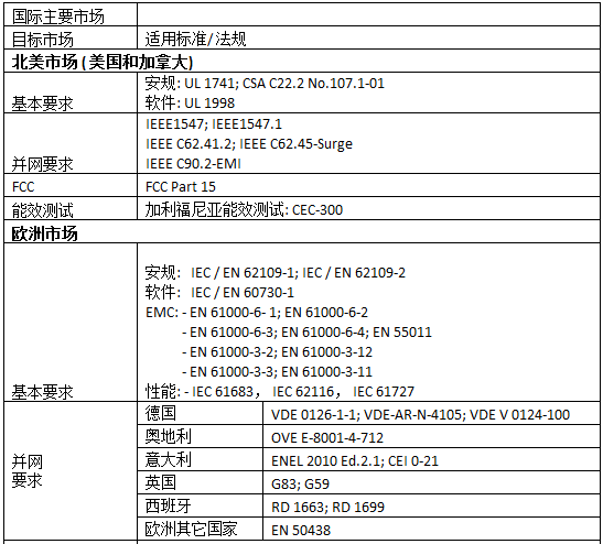 太陽能光伏并網逆變器主要使用國家的認證包括: