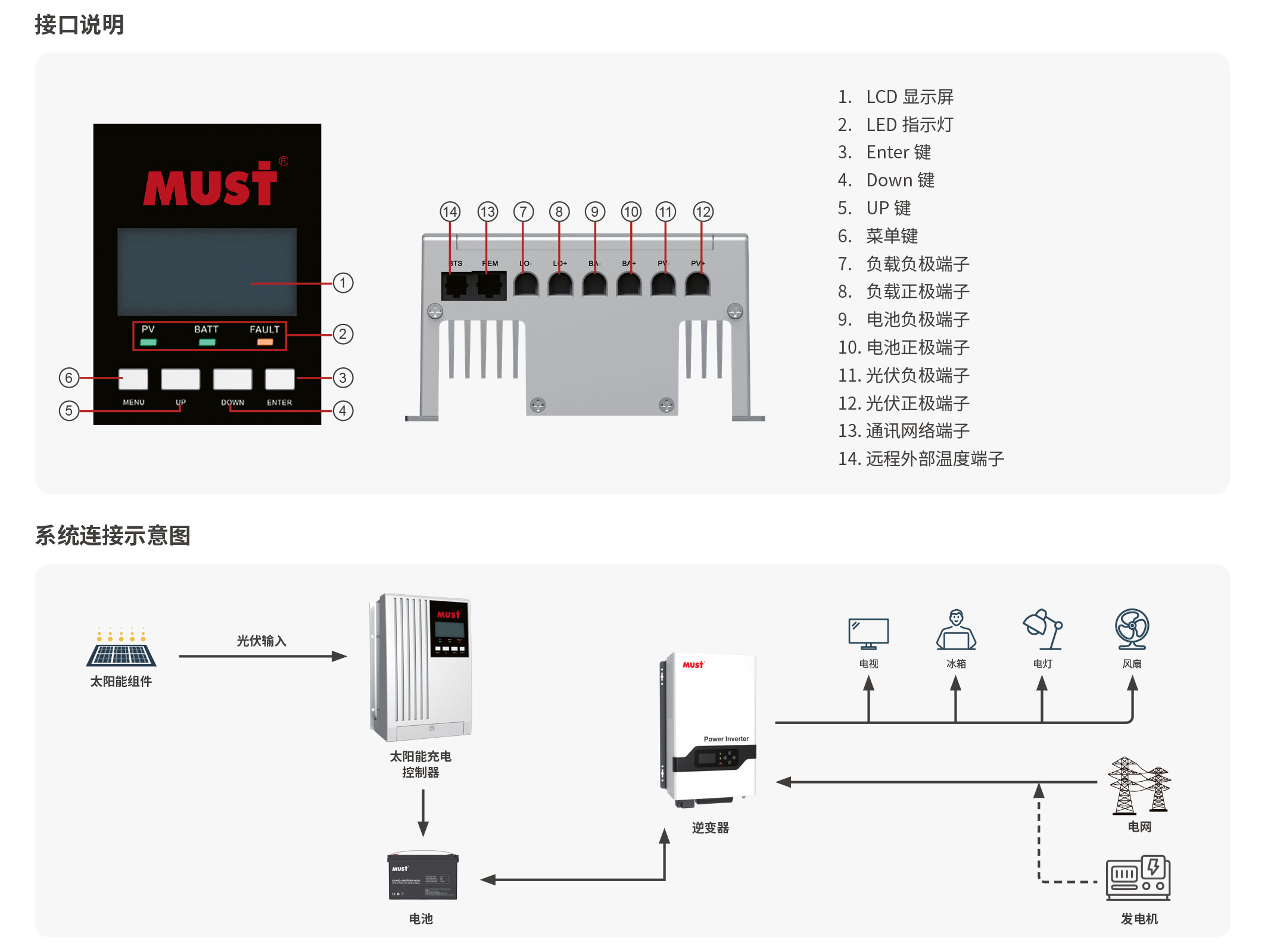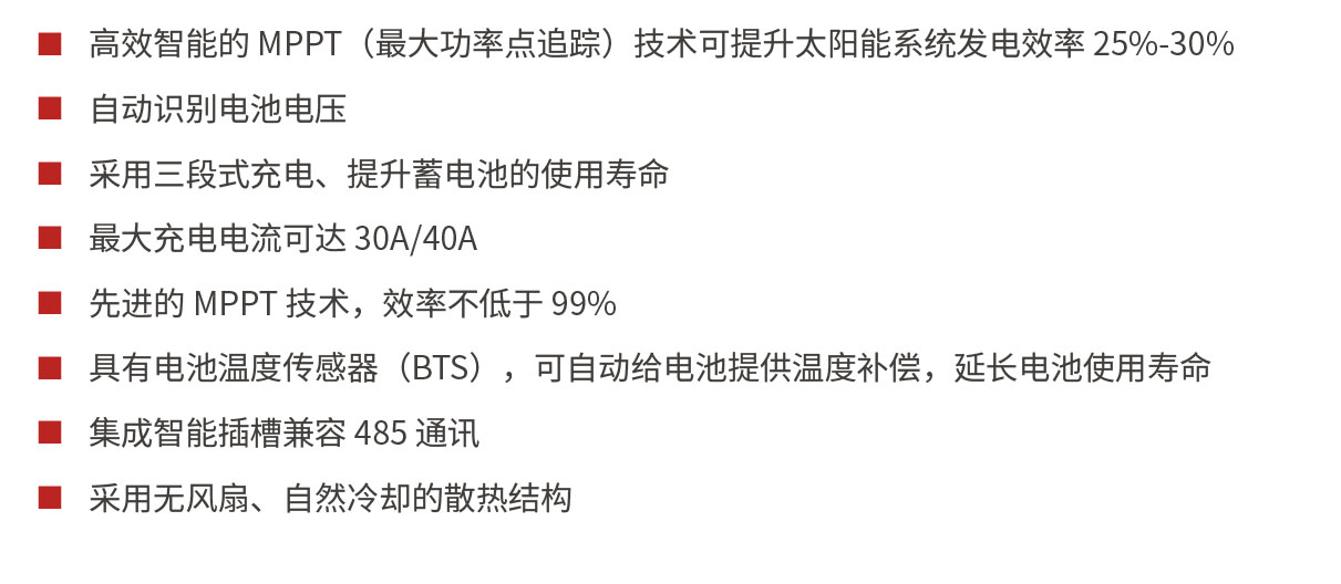 PC 系列是一款 MPPT 充電控制器,具有高效 MPPT 控制算法,在任何環(huán)境下能快速追蹤到光伏陣列的最大功率點(diǎn),大幅度提高了太陽能的利用率。應(yīng)用于太陽能系統(tǒng)、監(jiān)控系統(tǒng)、中小型通訊基站供電系統(tǒng)、太陽能直流供電系統(tǒng)。