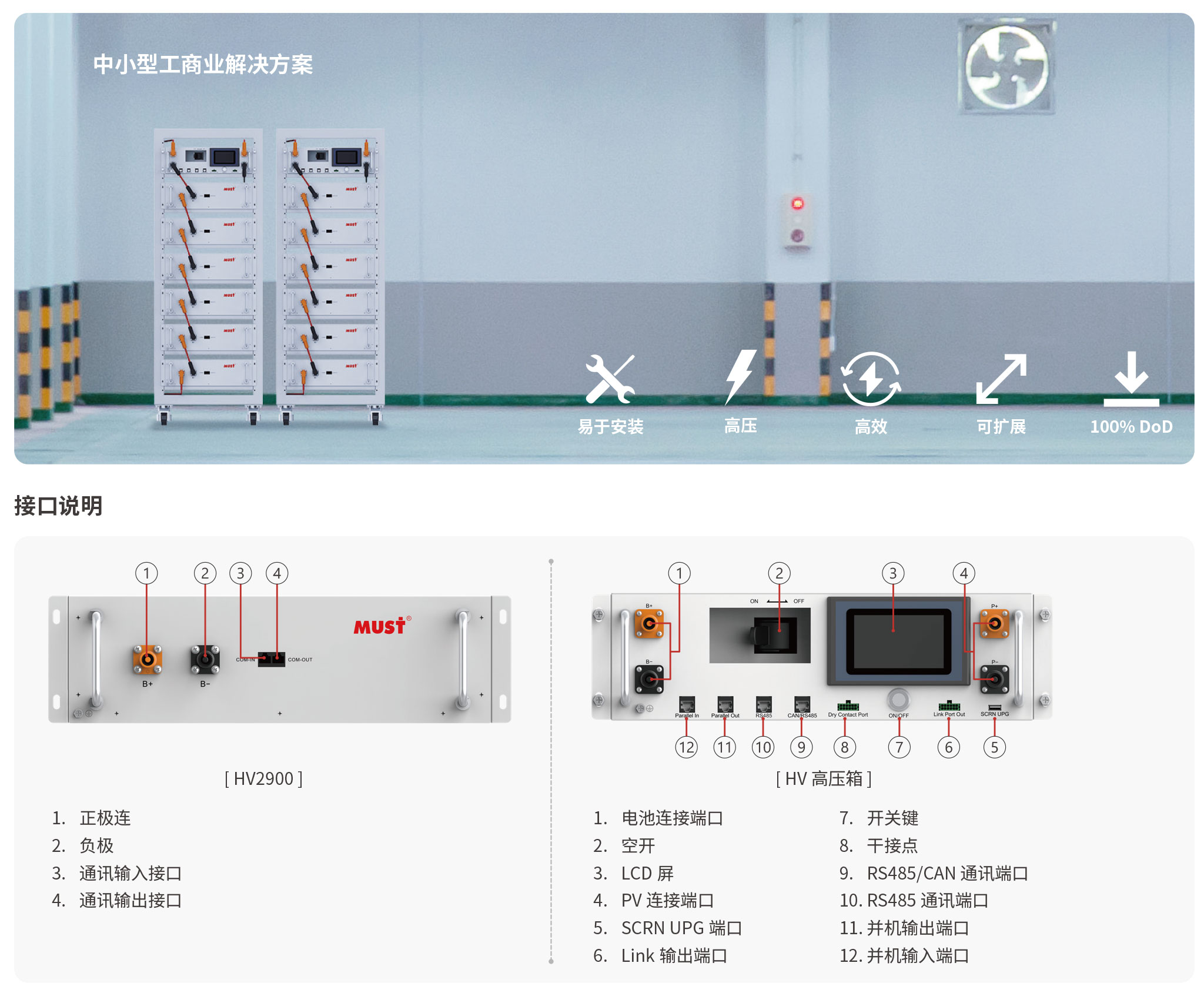 HV2900 PRO 是一款高性能、可擴(kuò)容的高壓電池。高效靈活的模塊化設(shè)計(jì),使其能適用于廣泛的儲(chǔ)能需求。支持模塊擴(kuò)容,可以串聯(lián)安裝,最大擴(kuò)充存儲(chǔ)容量為706.5kWh,安裝便捷,即插即用。