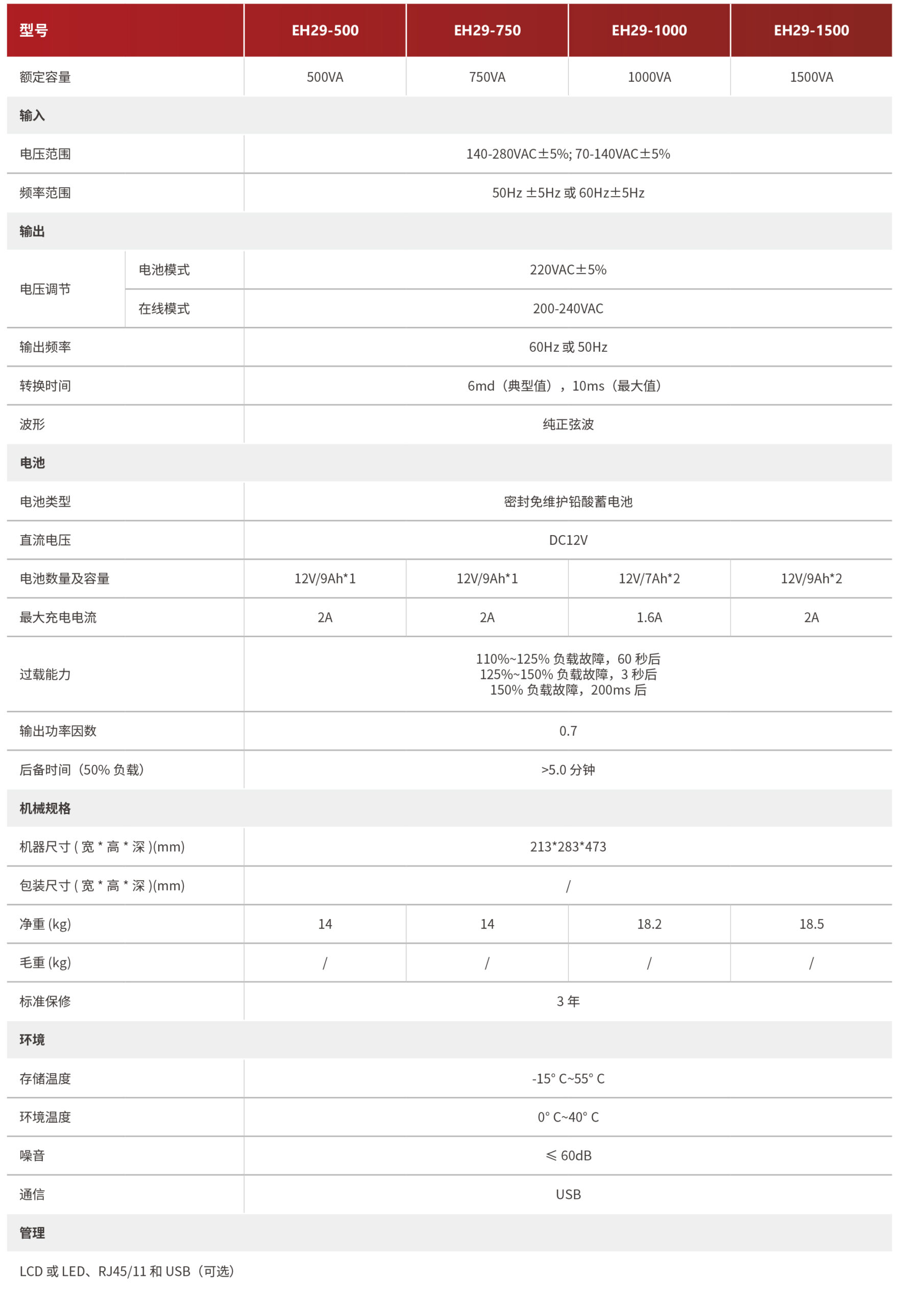 EH2900 是一款性能卓越的小型線交互式不間斷電源(UPS),可為臺式電腦、工作站、網絡設備以及需要主動式功率因數校正(PFC)電源兼容的家庭娛樂系統提供電池備份、電源保護(通過正弦波輸出)和浪涌保護。