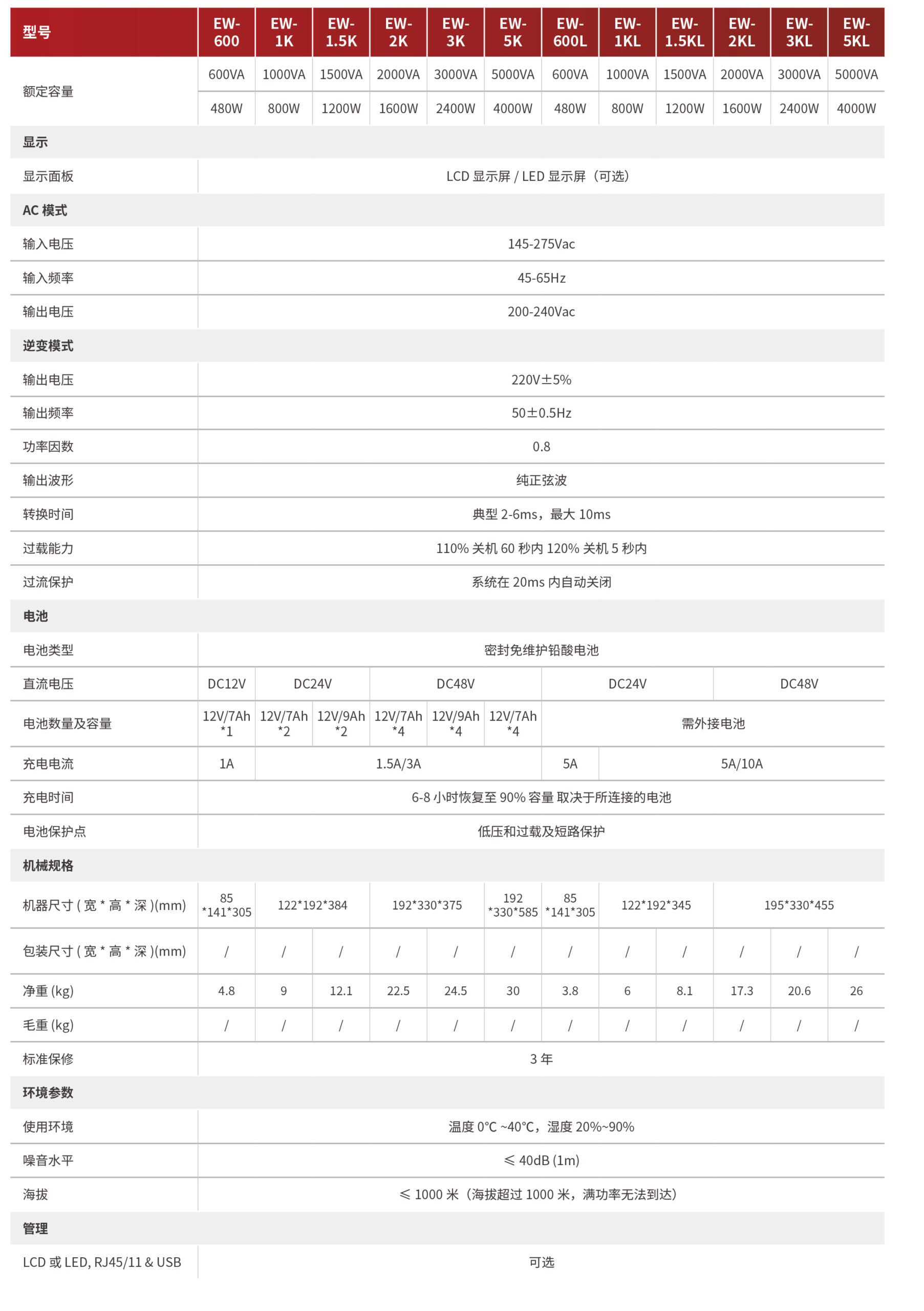 工作方式: EW2150 是一款小型在線互動式 UPS,為家庭和辦公室提供可靠的后備電力,并保護辦公室計算機和其他電子設備免于受到浪涌、停電和其他異常狀況的影響。適用于 IT 機房、數據中心、自動化設備、精密儀器、智能設備等。