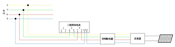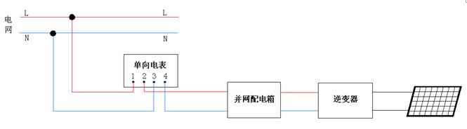 全額上網模式下只需要一塊電能表,用于計量光伏系統總發電量,接線圖如圖4和圖5所示: