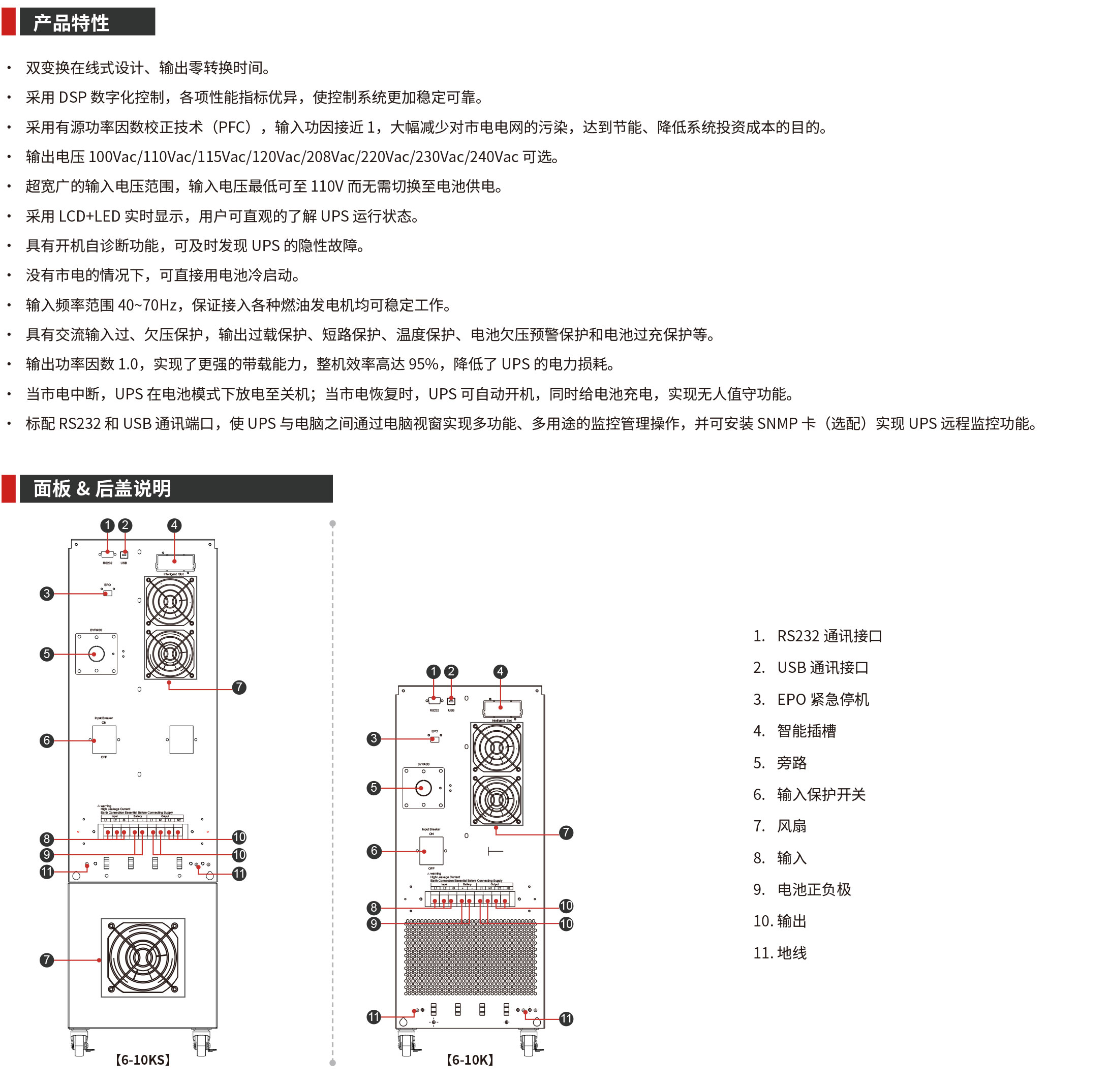 - 采用LCD+LED 實時顯示,用戶可直觀的了解UPS 運行狀態。