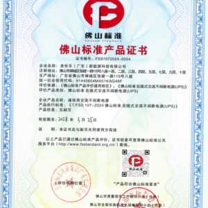 再迎喜訊!MUST 不間斷電源獲“佛山標準產品”認定 2025-4-15