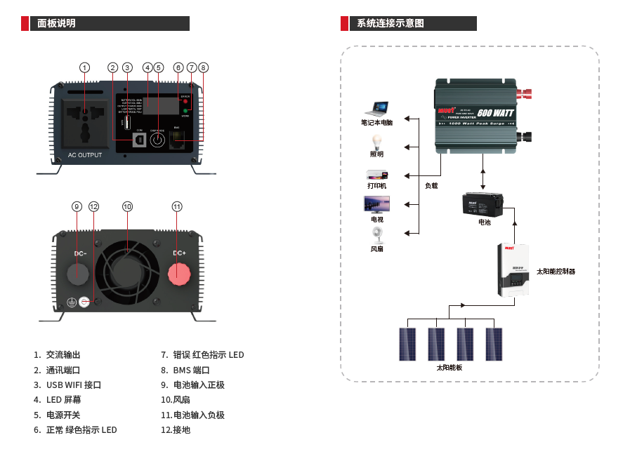 - AC 產品的便攜式電源,連接多個負載的AC 插座