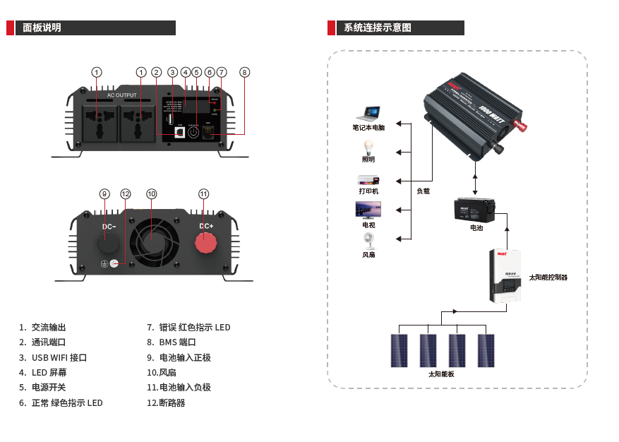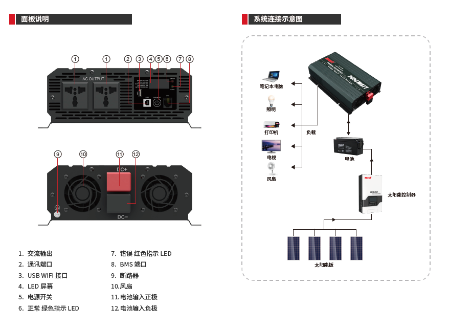 PV1100 PLUS系列修正弦波太陽能逆變器1.2-2.4KVA